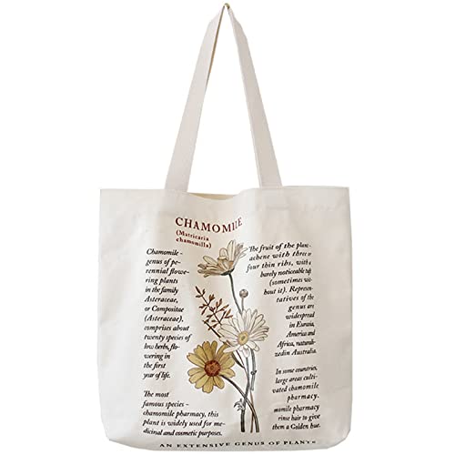 Juteväska tryckt estetisk vintage shoppingväska tygväska kamomill återanvändbar axelväska tygväska med dragkedja och små sidofickor för kvinnor shopping kontor vardag fritid, Vit, L