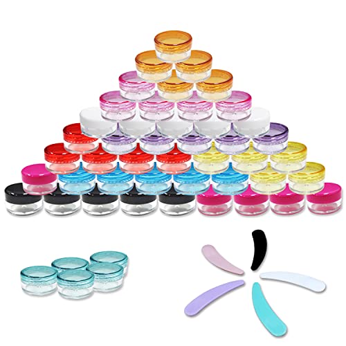 AIRNOGO Burkar 50 stycken små glas med färgglatt lock 5 g 5 ml mini krämburk tom burk resa små degelprover behållare, för läppglans kosmetika salvor nagelkonst läppbalsam