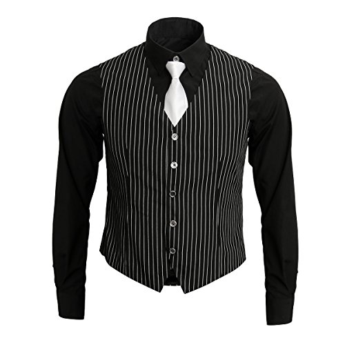 Nofonda 1920-talet vuxen herr gangsterskjorta, väst och slips kostym 20-tals fin utklädnad outfit kostym vintage Gangster Boss kostym (X-Large), svart