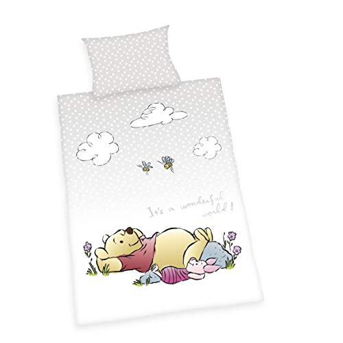 Disney Home Nalle Puh barnsängsset 100 x 135 – örngott 40 x 60 – Pooh björn och kulting – vändbara sängkläder – supermjukt förstärkt 100% ekologisk bomull, 2-delat sängkläder