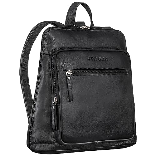 STILORD 'Ennio' läderryggsäck med laptopfack 13 tums ryggsäck dam vintage ryggsäck herr läder studentryggsäck laptopryggsäck, svart, L, Ryggsäck
