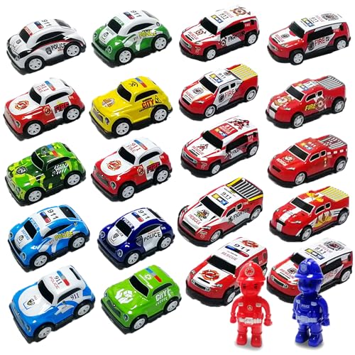 TOYABI 20-delars billeksaksset för barn med 2 trafikpoliser figurer – perfekt present till barnkalas, dra tillbaka bilar för pojkar och flickor, pedagogiskt spel