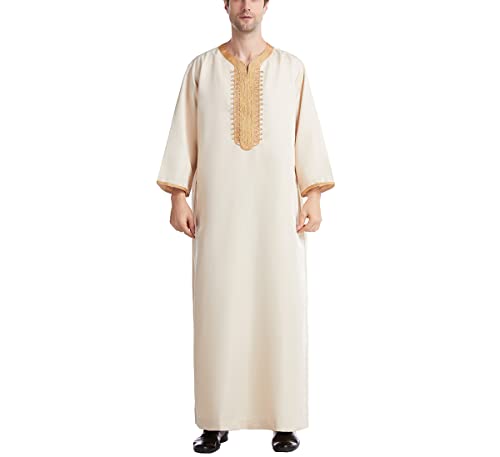 Wjnvfioo Muslimsk islam herr robethobe vår rund hals Ramadan Dubai broderade vadärmar ankellängd kaftanthawb, BEIgE, XL
