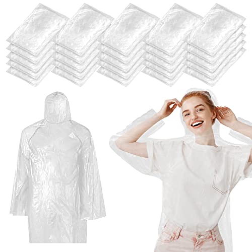 30 stycken engångs-regnjacka, transparent regnponcho, engångsregncape, transparent, regnponcho, regnponcho, engångs, transparent, regn med huva, vattentät, för camping, musikfestival, konsert, fest, 1, 3XL stor